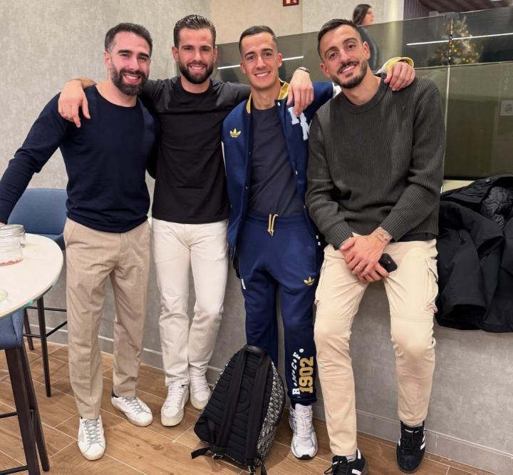 在圣诞节期间,皇马功勋队长纳乔回到了马德里,与昔日老队友们重逢。