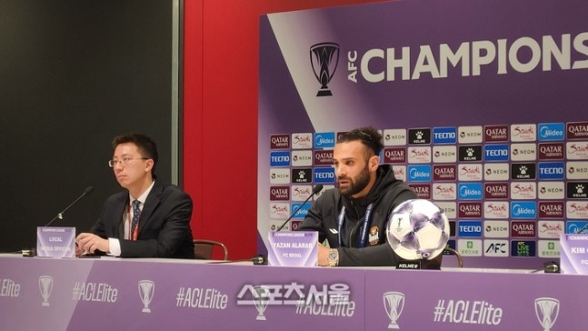 亚冠精英联赛首尔客场对阵海港赛前,首尔外援亚赞出席了新闻发布会。