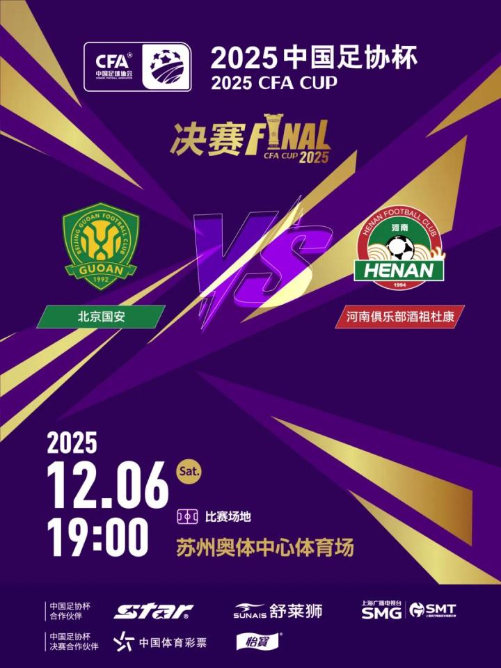 12月6日19:00,2025中国足协杯决赛将在苏州奥体中心拉开帷幕——北京国安VS河南,即将上演年度收官足球盛宴,为欢迎全国球迷的到来,苏州的宠爱如期而至!