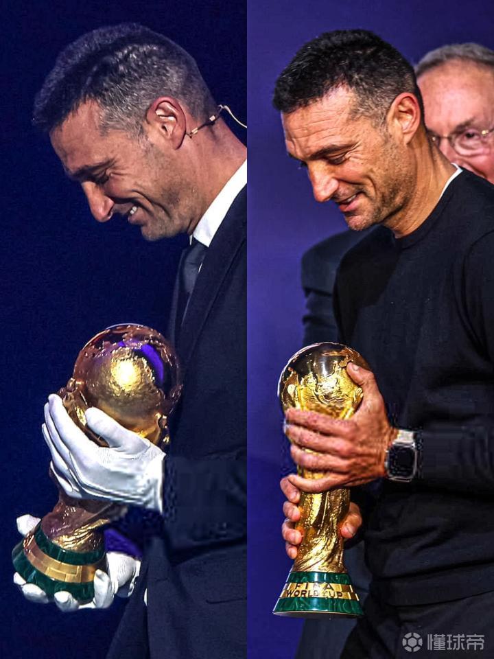 正因如此,在赛程发布会尾声,当斯卡洛尼结束对分组形势的评论后,因凡蒂诺邀请这位阿根廷主帅重新走上台前。在众人的注视下,斯卡洛尼这次直接伸出双手,毫无隔阂地触摸了奖杯。