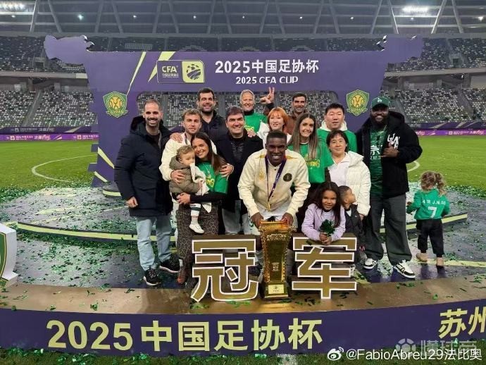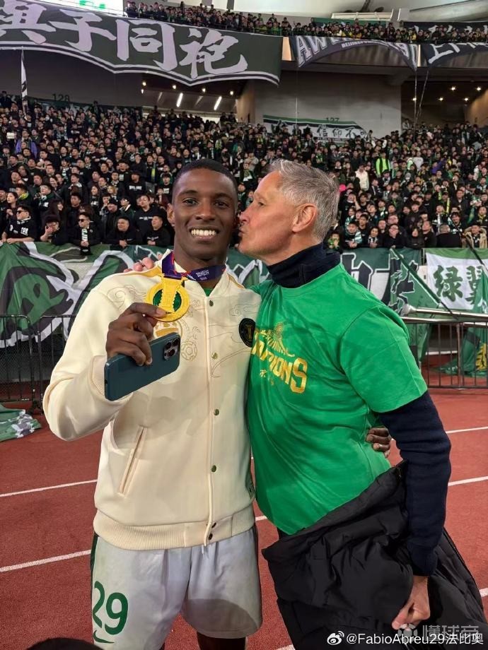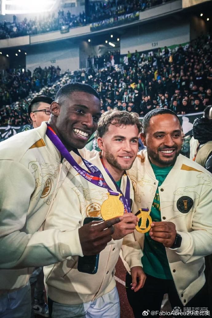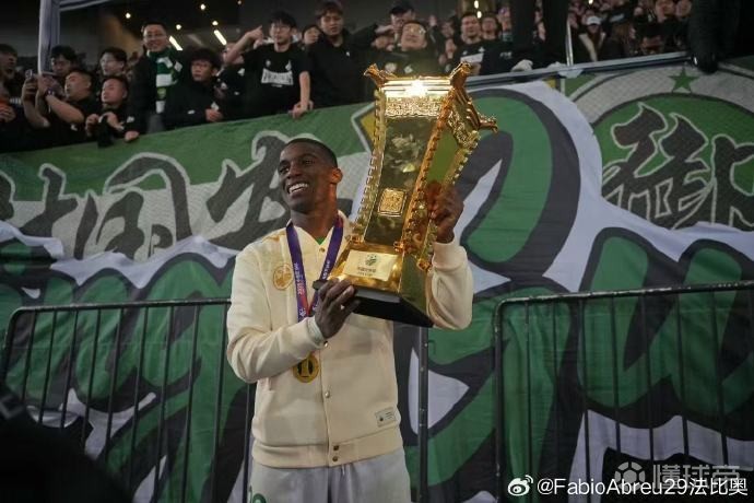 国安外援法比奥-阿布雷乌在个人社交媒体上晒照,以庆祝球队获得本赛季足协杯冠军。
