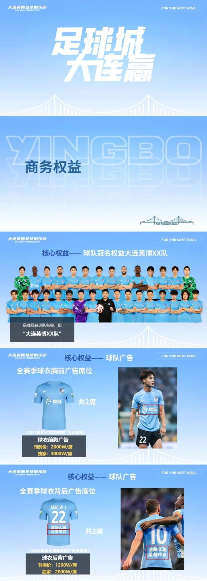 大连英博发布2026中超招商合作手册,现面向市场公开招商,涵盖球队冠名权、球衣胸前广告、球衣背后广告等权益。