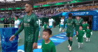 双方球员步入球场,大战即将打响