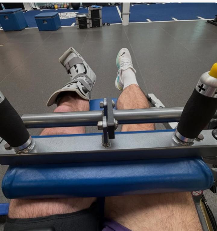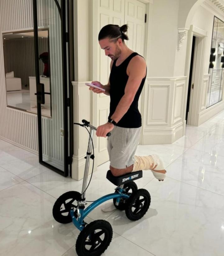 上月因脚部伤势接受了赛季报销的手术,格拉利什的脚部被大面积包扎,还不得不穿上医用护靴。但他选择在逆境中保持积极心态,在社媒写道:“术后第四周,正刻苦康复,只为变得更好、更强,重返赛场。”