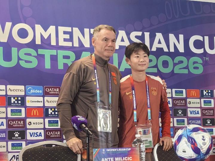 北京时间3月13日,女足亚洲杯四分之一决赛中国vs中国台北的赛前新闻发布会在珀斯矩形体育场进行。中国队主教练米利西奇携球员吴澄舒出席。