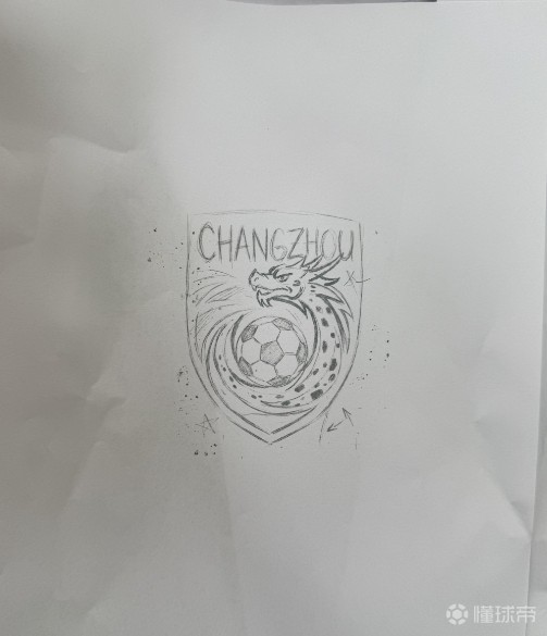 蔡坚办公桌抽屉里还有几张队徽的“手搓”草稿,他告诉记者,在设计最初,他就定位好了四大元素:龙、足球、常州拼音首字母“CZ”和盾牌,立体足球居于中心,直接点明足球运动的核心属性,奠定竞技基调;主视觉采用灵动的龙形,呼应常州“龙城”的千年别称,既象征球队的强劲实力与昂扬斗志,也承载着常州人的城市情怀;外围环绕盾牌造型,寓意球队以坚固的防守为基石,守护城市荣誉,传递坚韧不拔的拼搏精神。