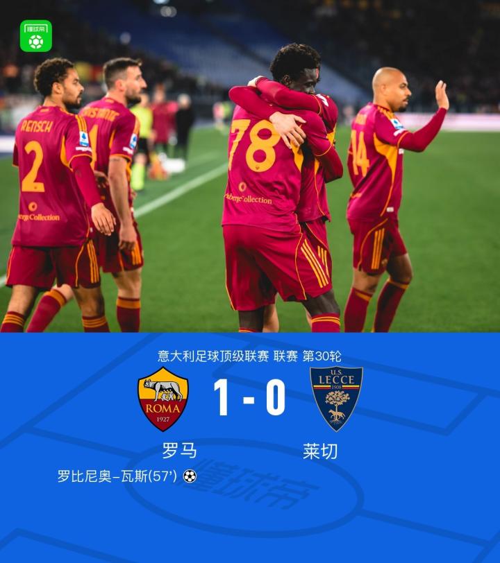 罗马1-0莱切,瓦斯破门制胜