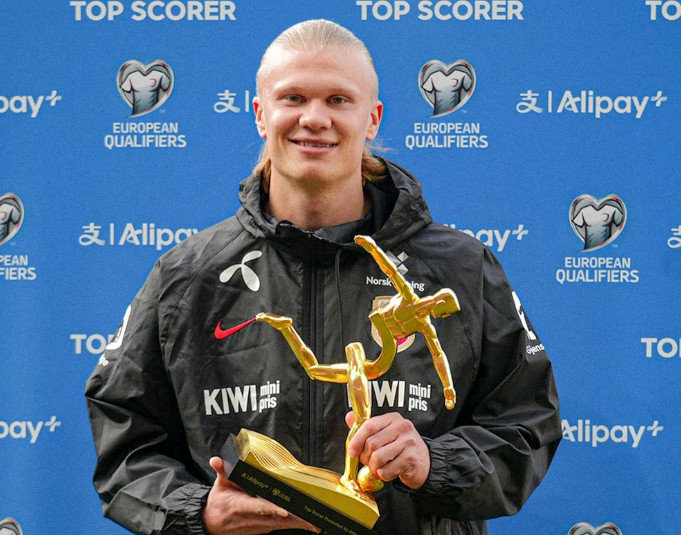 在北京时间今天凌晨对阵瑞士队的友谊赛结束后,哈兰德领取了本届赛事的射手王奖杯。