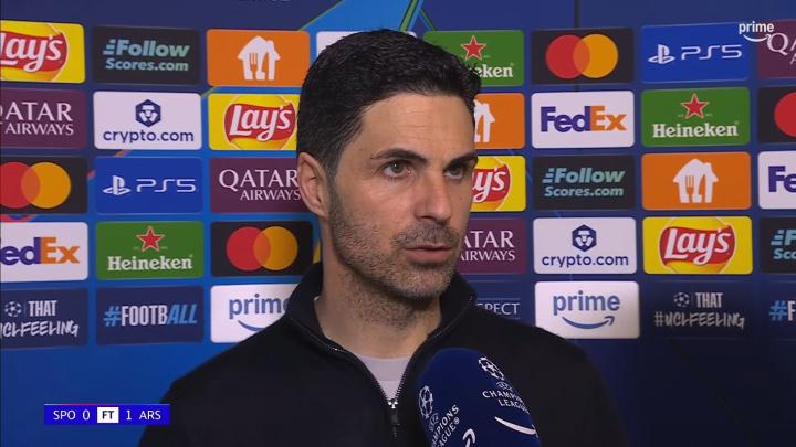 率队在欧冠1/4决赛首回合客场1-0击败葡萄牙体育之后,阿森纳主教练阿尔特塔接受了来自亚马逊Prime Video的采访。