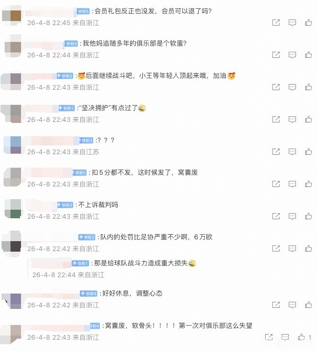 “我从11年开始看绿城,从未有过任何强硬的时候,从未有过拥护球员,软蛋俱乐部,球迷在外跟人家打嘴巴受气,俱乐部自己马上下跪,这可是比输一场比赛受伤的多,这个俱乐部就这样吧,什么大的出息”