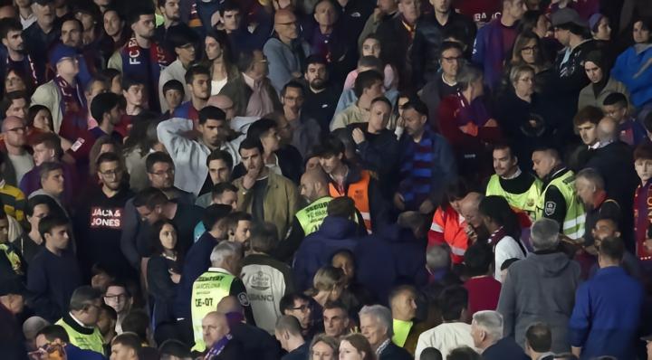 在巴萨对阵塞尔塔的比赛上半场尾声阶段,诺坎普球场经历了令人焦虑和极度紧张的时刻。一名巴萨球迷在看台边区域突然倒地,比赛被迫中断,所有人的注意力都集中在抢救这名突发意外的球迷身上。