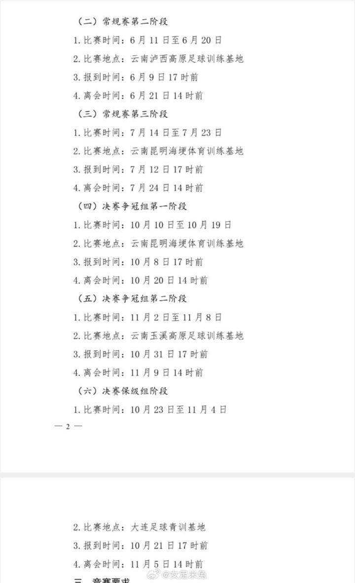 根据通知显示,2026年中女甲联赛将于5月2日开幕,分六个阶段,在云南和大连集中进行。