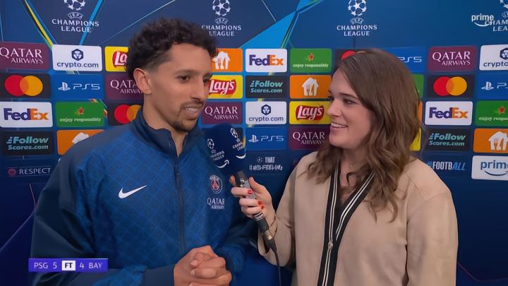 在欧冠半决赛首回合主场5-4战胜拜仁慕尼黑之后,巴黎圣日耳曼队长马尔基尼奥斯接受了来自亚马逊Prime Video的采访。