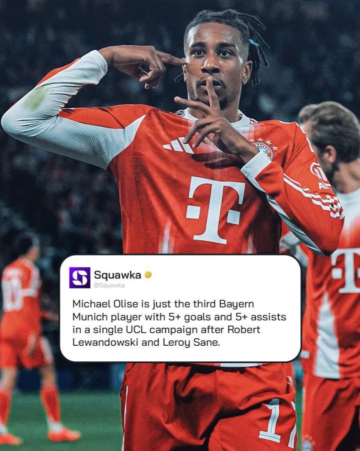 据统计,奥利塞成为继2019-20赛季的莱万多夫斯基和2021-22赛季的萨内之后,第三位单赛季欧冠进球和助攻均达到5+的拜仁球员。
