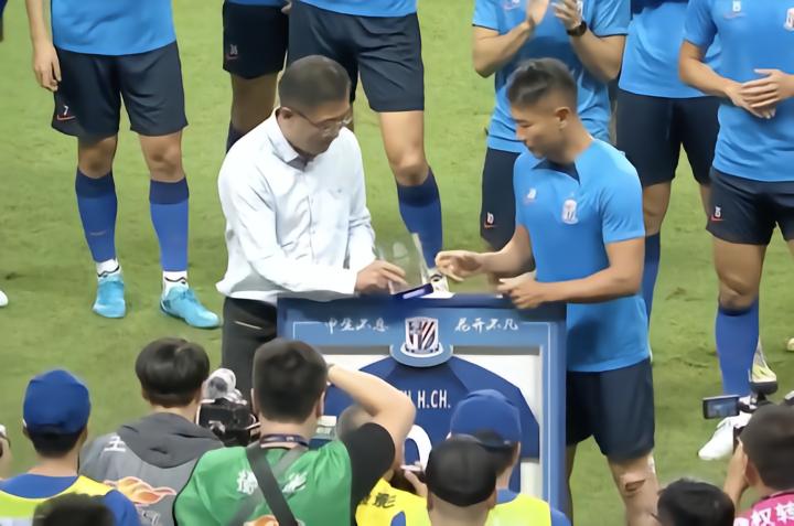中超第26轮,上海申花主场对阵天津津门虎,赛前,俱乐部为于汉超颁发了申花生涯中超百场纪念球衣。