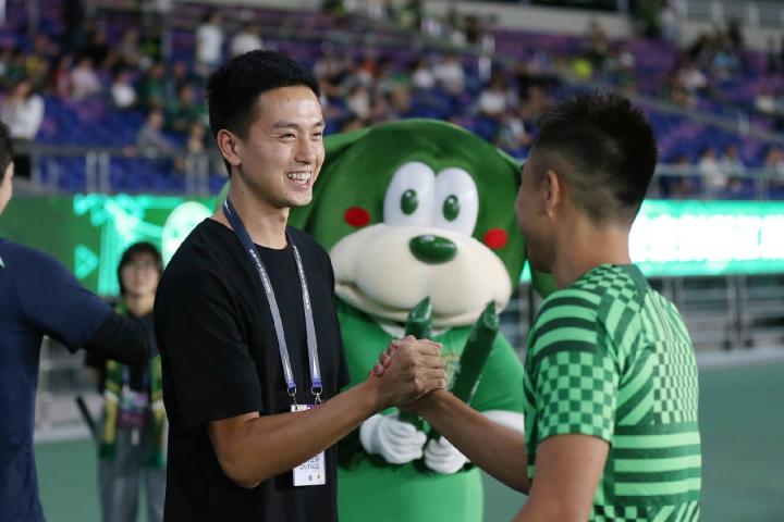 在今晚的比赛中,浙江FC特别邀请洪少君再次来到黄龙观赛,不仅与球队球员进行了亲密互动,还接受了全场球迷的敬意。