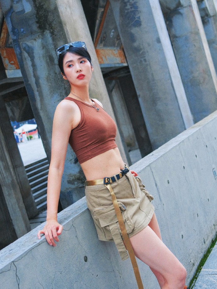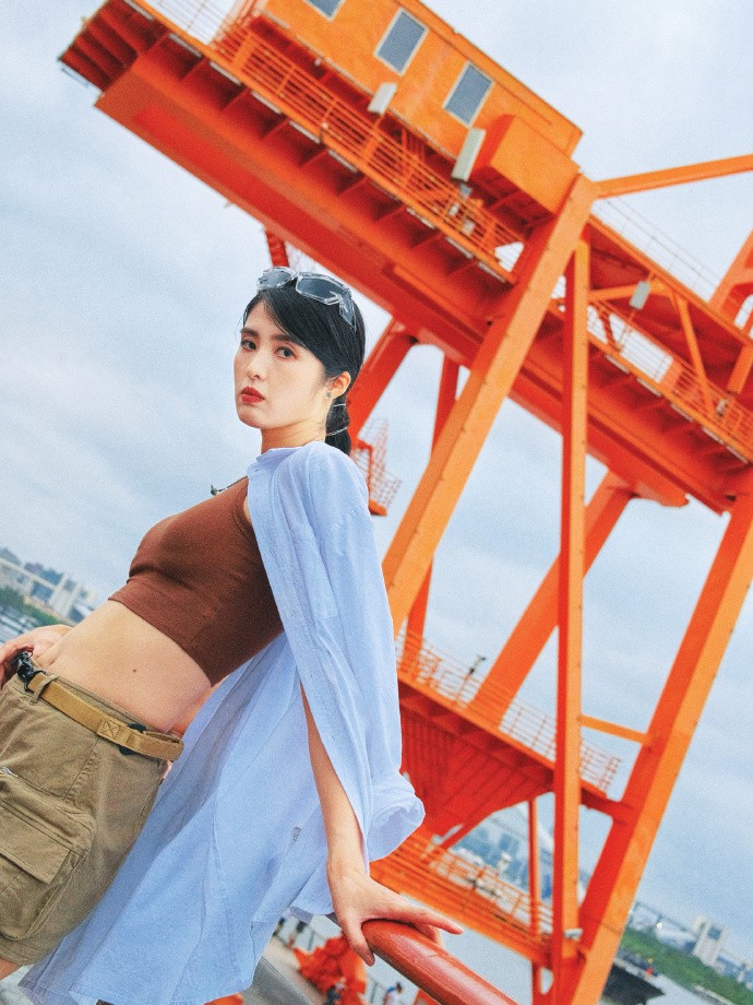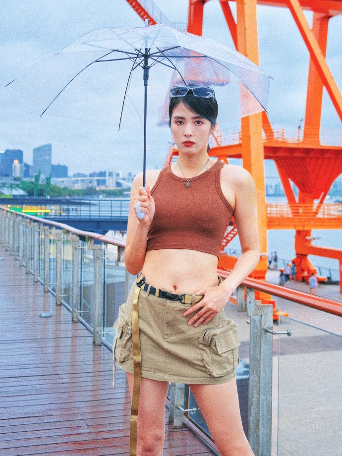 赵丽娜的这组写真风格随性,穿搭帅气,虽然有些冷峻,但一束单马尾倒也添了几分可爱。