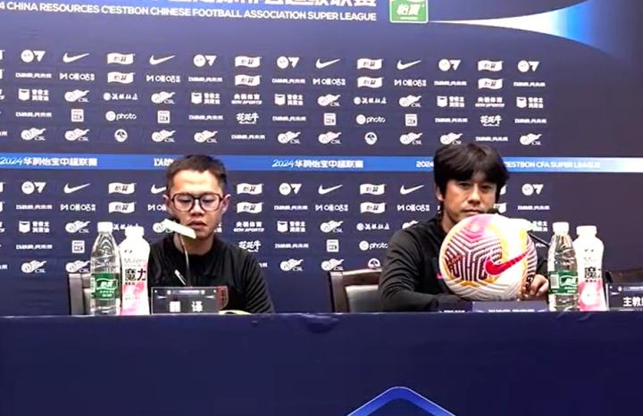 足协杯半决赛客场对阵山东泰山队赛前,成都蓉城主帅徐正源携球员周定洋出席了新闻发布会。