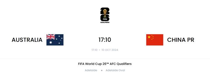 据国际足联官方消息,十八强赛第三轮国足客战澳大利亚开球时间推迟10分钟,改为10月10日17:10开球。
