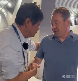 申花传奇范志毅来到了比赛现场,他给球队主教练斯卢茨基送上了一瓶茅台。