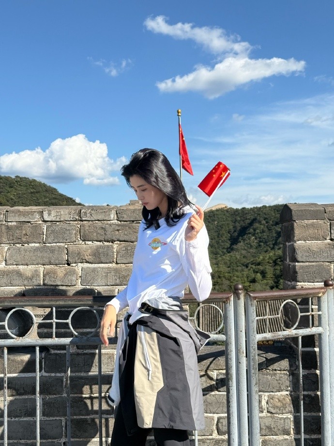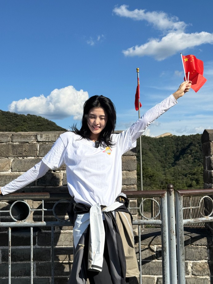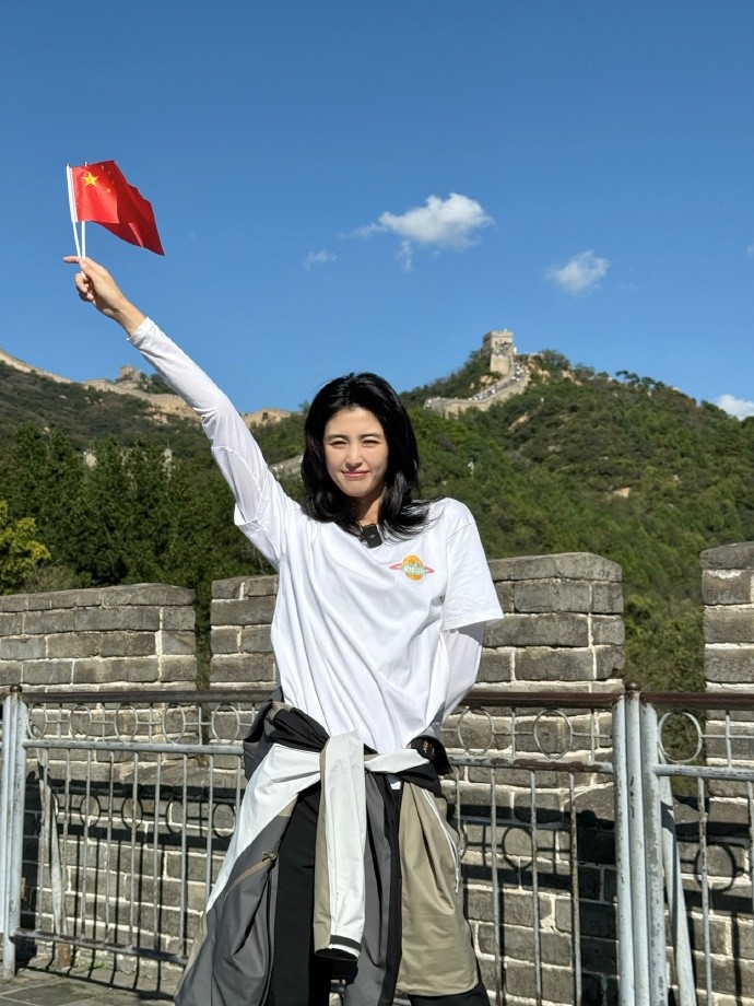 10月1日,前中国女足球员赵丽娜在社交媒体上晒出了自己前往长城打卡的照片,表达了对祖国母亲生日的祝福。