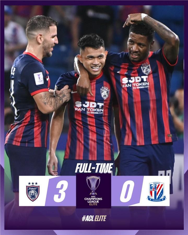 本轮回到主场作战之后,柔佛新山更是给了上海的另一支球队上海申花沉重的一击。在取得一场大胜之后,这支来自马来西亚的球队在本赛季亚冠精英联赛对阵上海双雄的比赛中取得了1胜1平的不败战绩。