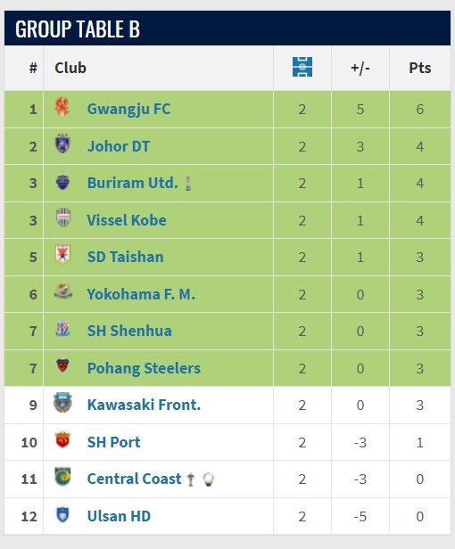 北京时间10月2日晚,亚冠精英联赛前两轮的比拼正式结束。东亚区这边,靠递补进入正赛的韩国黑马球队光州两战两胜暂列榜首,柔佛新山、武里南联、神户胜利船三支球队各积4分:柔佛靠从上海双雄夺得的分数排第二,中超球队无缘碰面的武里南排第三,刚险胜了山东的神户排第四。