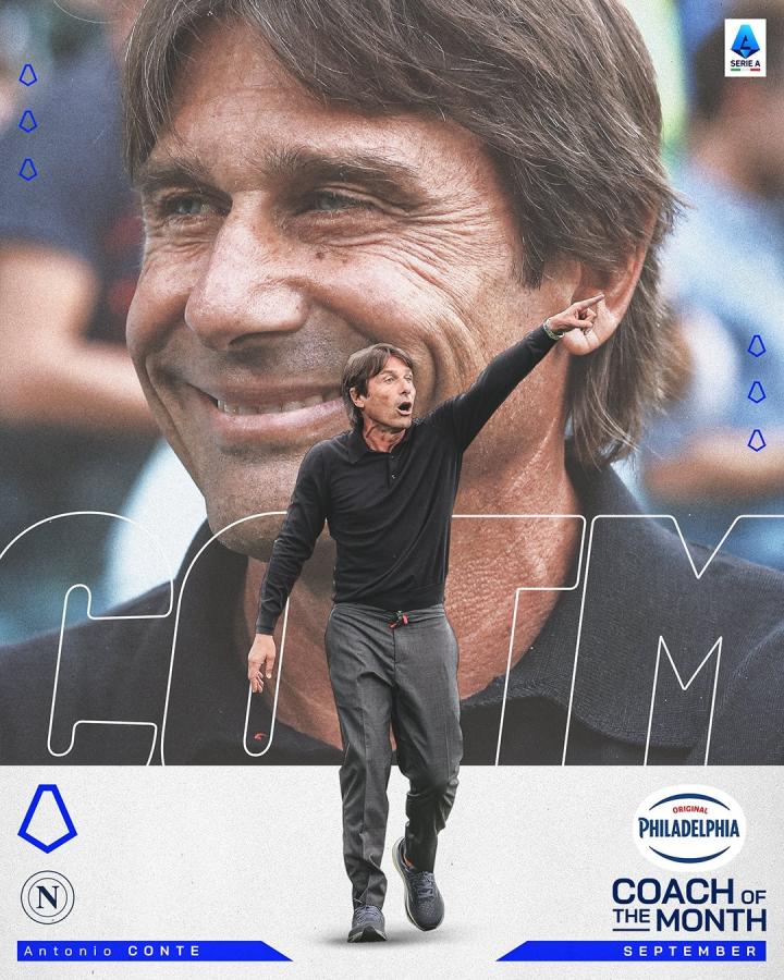 北京时间10月3日,意甲官方宣布,那不勒斯主教练孔蒂当选联赛9月最佳教练。