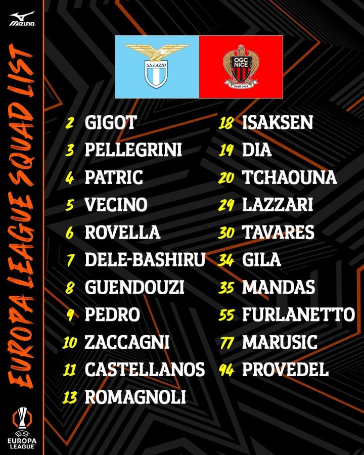 北京时间10月4日凌晨0点45分,欧联联赛阶段第2轮,拉齐奥将在主场对阵尼斯。赛前,拉齐奥官方公布了球队本场比赛的大名单。