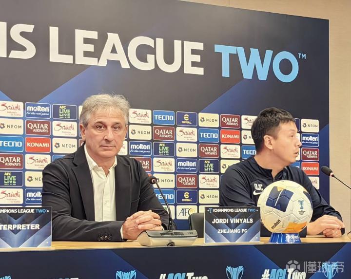 据懂球帝记者@雷杰深 现场报道,北京时间10月3日,亚冠二级联赛小组赛,浙江1-0战胜万隆。赛后,浙江队主教练乔迪携队员埃弗拉出席新闻发布会。