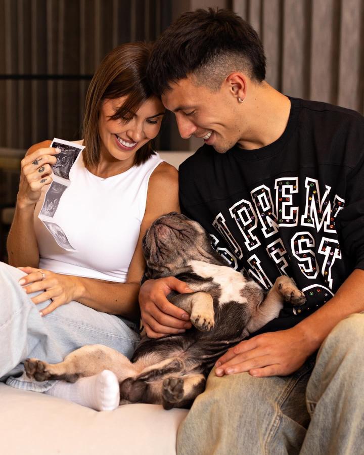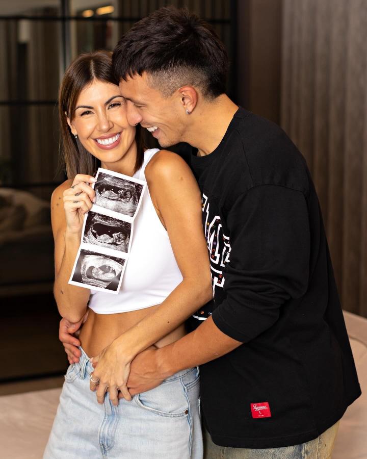 利桑德罗-马丁内斯和女友在社交媒体联合发布照片,女友手里拿着B超照片。