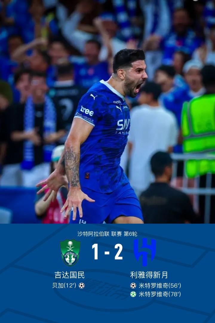 6连胜领跑!新月2-1逆转吉达国民,米特罗维奇双响,贝加破门