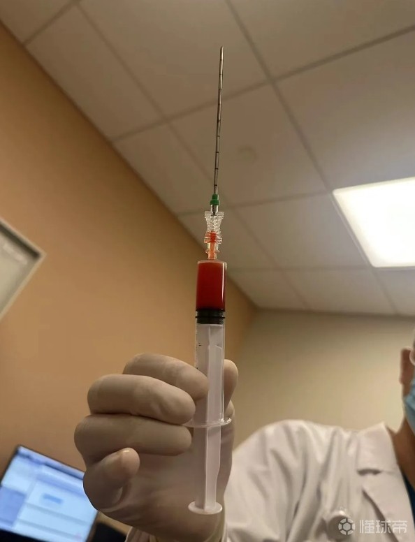 记者甘慧报道,昨天上海申花边后卫杨泽翔在医院完成了血肿抽吸清除,从下方图片里可以看到,医生从杨泽翔受伤的大腿肌肉部位抽出了不少瘀血。