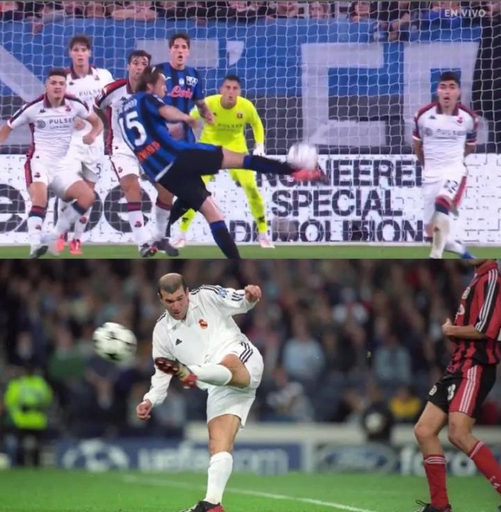 赛后,德容恩更新个人社交媒体,并对比了自己和齐达内曾经打入的经典进球。