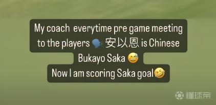 安以恩在社交媒体里写道:“我的教练在每一次赛前准备会时都会告诉队员们🗣️:‘安以恩是中国萨卡😅’现在,我攻入了萨卡式进球🤣”