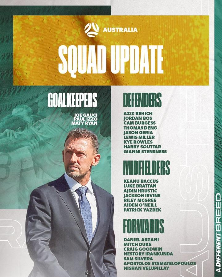 北京时间10月6日,澳大利亚国家队官方宣布,球队主教练波波维奇对即将到来的世预赛的26人大名单进行两项调整,在中场位置更换了2名球员。