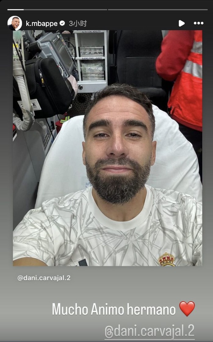 北京时间10月6日,皇马后卫卡瓦哈尔确认自己十字韧带断裂。为此,皇马球星姆巴佩更新了社媒,祝福卡瓦哈尔。