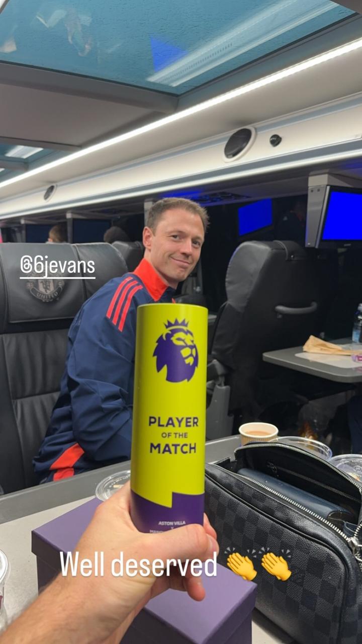 此役客场对阵维拉,马奎尔和埃文斯作为首发中卫搭档出战,上半场尾声阶段出现受伤的马奎尔中场休息时被换下,而36岁的埃文斯则打满全场,并被评为全场最佳球员。