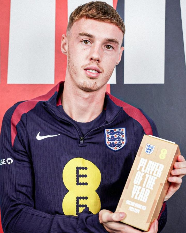 最终经过评选,帕尔默当选2023-24赛季英格兰队最佳球员,并领取了奖杯。