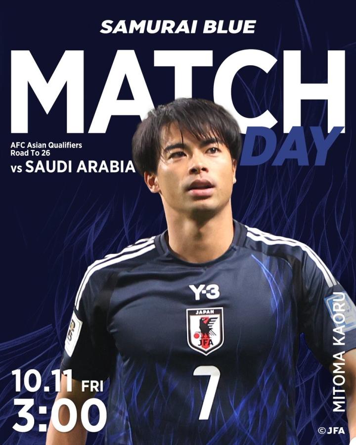 10日,日本足协官方公布了世预赛18强赛客场对阵沙特的海报。