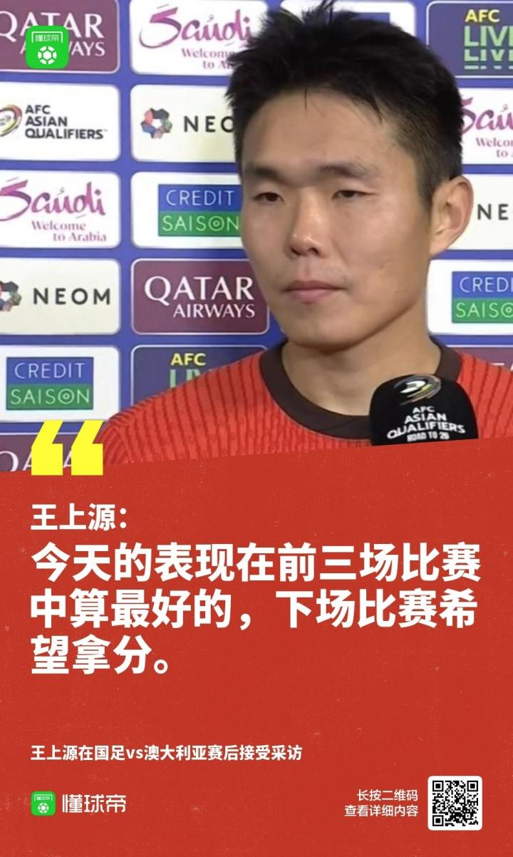 北京时间10月10日,在客场1-3不敌澳大利亚后,国足中场王上源接受了全英文的赛后瞬采。