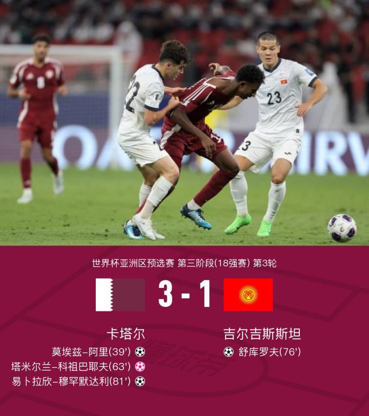 卡塔尔3-1吉尔吉斯斯坦,莫埃兹传射,科祖巴耶夫自摆乌龙