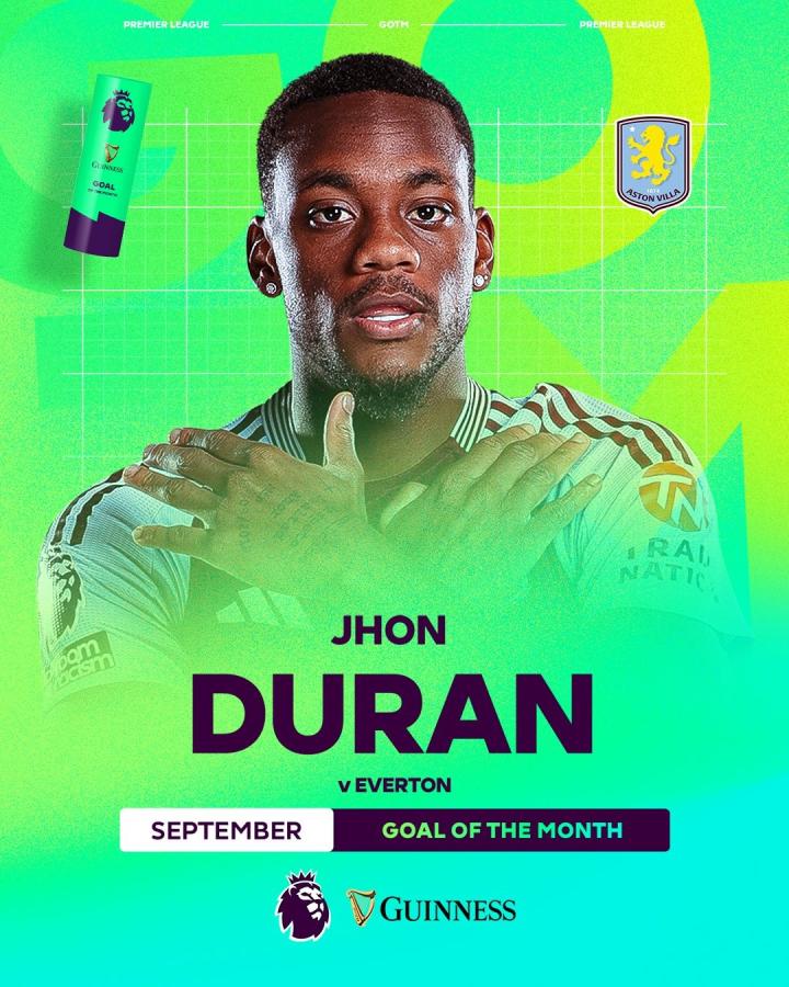 北京时间10月11日,英超官方公布了9月份最佳进球,杜兰对埃弗顿的惊天世界波当选。