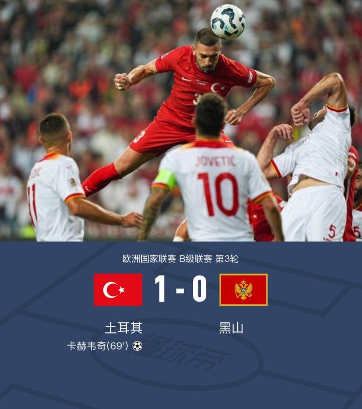 土耳其1-0黑山,卡赫韦奇替补致胜,柯克曲、伊尔迪兹中柱