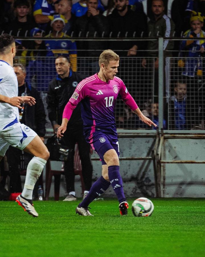 在与波黑的欧国联比赛中,身披10号球衣的美因茨前锋伯卡特完成德国国家队首秀。