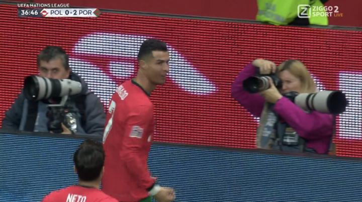 在欧国联A级第三轮葡萄牙客场与波兰的比赛中,C罗在第37分钟破门得分,帮助本队取得了2-0的领先优势。