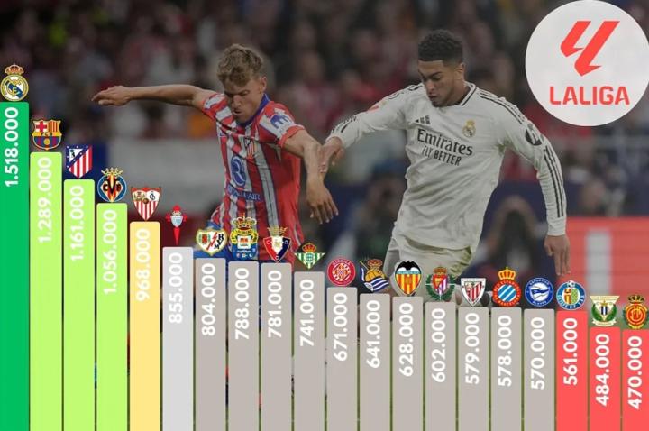 根据《马卡报》的报道,本赛季西甲前9轮过后,皇家马德里是场均收视人数最高的球队,巴塞罗那排名第二,马德里竞技位列第三。