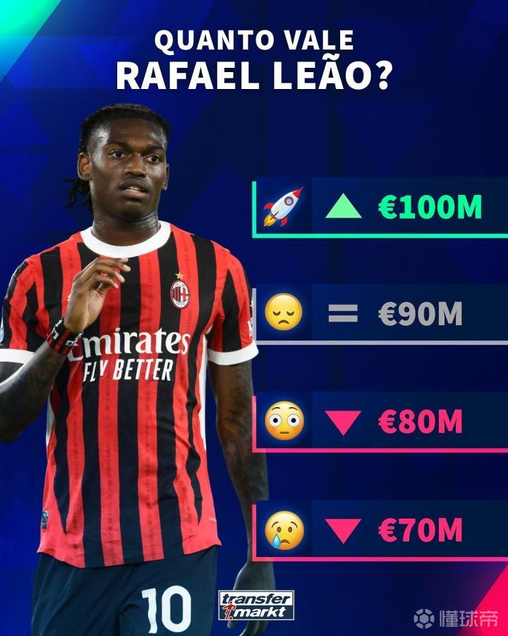 转会市场网表示他们即将对米兰前锋莱奥的身价进行更新,并给出了四种可能性。