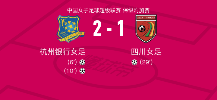 杭州银行女足2-1四川女足成功保级,四川女足无缘新赛季女超