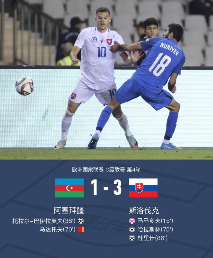 阿塞拜疆1-3斯洛伐克,哈拉斯林、杜里什破门